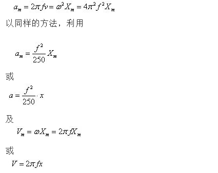 因此在根據(jù)上式確定了加速度區(qū)域的激振力和已知試驗加速度幅值a后,用下式a=2πfv即可計算出此試驗負載下的加速度區(qū)和速度區(qū)的交越點,然后繼續(xù)用下式V=a/2πf計算出該交越點以下速度區(qū)內(nèi)頻率點各對應(yīng)的速度幅值的大小。當計算值小于初步選定的振動臺的最大速度幅值時,試驗可行;選型得以確認,反之則應(yīng)重新選型。