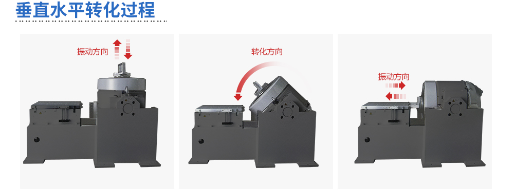 帶水平滑臺的電動振動臺可以用于水平和垂直試驗,兩個方向的切換方式簡單,翻轉方便。