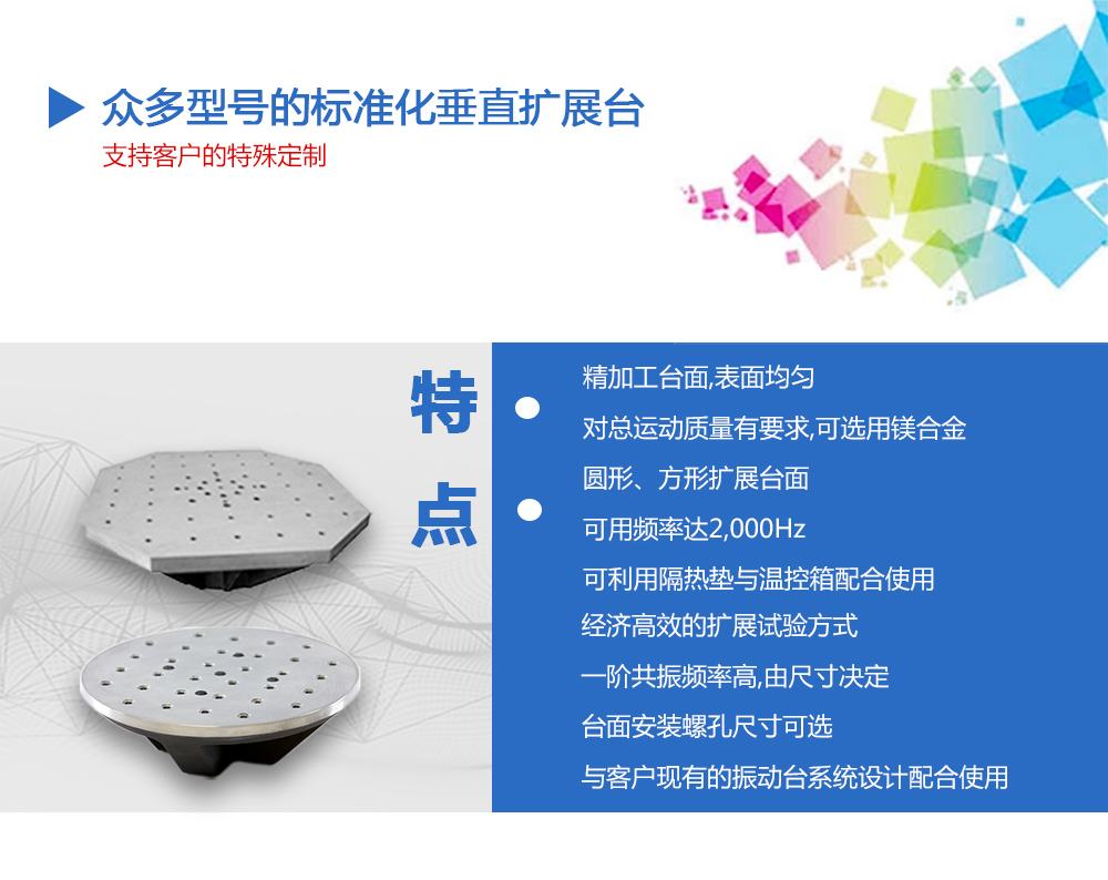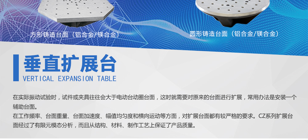 產(chǎn)品型號:CZ0303 品牌:劍 喬 用途:供應(yīng)眾多型號的標(biāo)準(zhǔn)化垂直水平擴(kuò)展臺,而且支持客戶的特殊定制,從而滿足客戶對振動臺性能擴(kuò)展的需求。在實際振動試驗時,試件或夾具往往會大于電動臺動圈臺面,這時就需要對咨詢熱線:13829135130